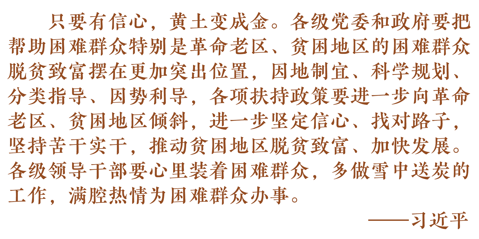 2012年12月30日,地处太行山深处的阜平县龙泉关镇骆驼湾村雪后放晴。习近平总书记踏着皑皑白雪就进了村,来到村民顾宝青和唐宗秀家中看真贫、唠家常、察民情。总书记鼓励乡亲和干部们“只要有信心,黄土变成金”,向全党全国发出了脱贫攻坚的动员令。