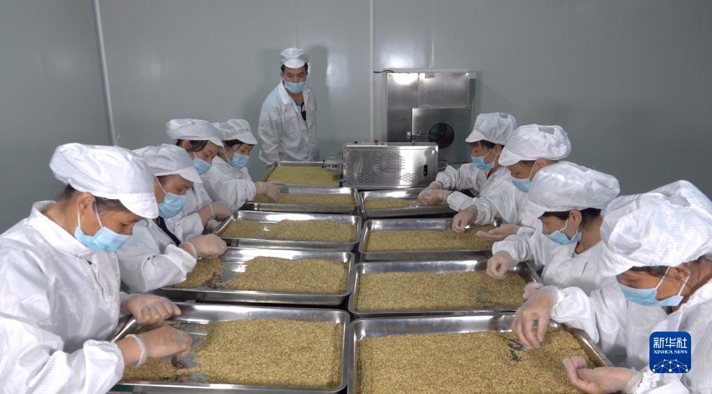 桂林原心达生物科技有限公司工人在精选槐米(资料照片)。新华社发
