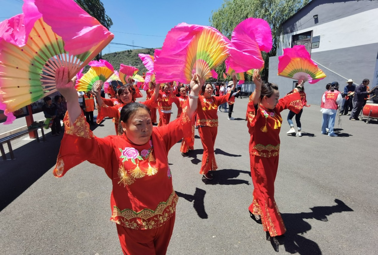 村民在广场上扭秧歌