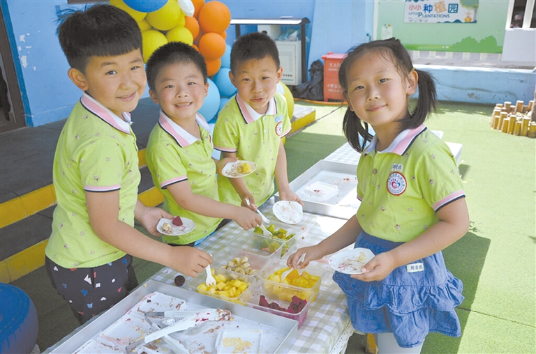 5月31日,市直二幼的孩子们高兴地参加幼儿园举办的“舌尖上的夏天”活动。