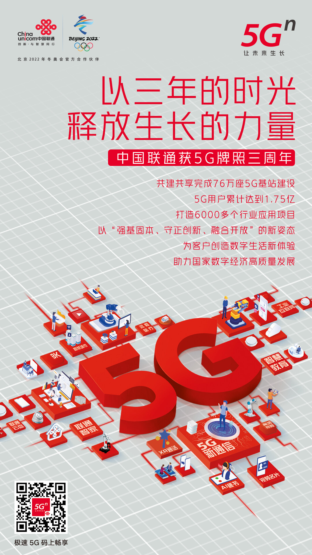 以三年的时光,释放生长的力量。中国联通获5G牌照三周年,始终坚持创新驱动,以优质网络联接千家万户,以数字科技赋能千行百业,创新数字生活新体验,共享美好新未来。