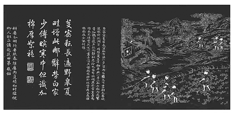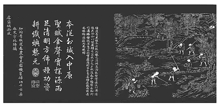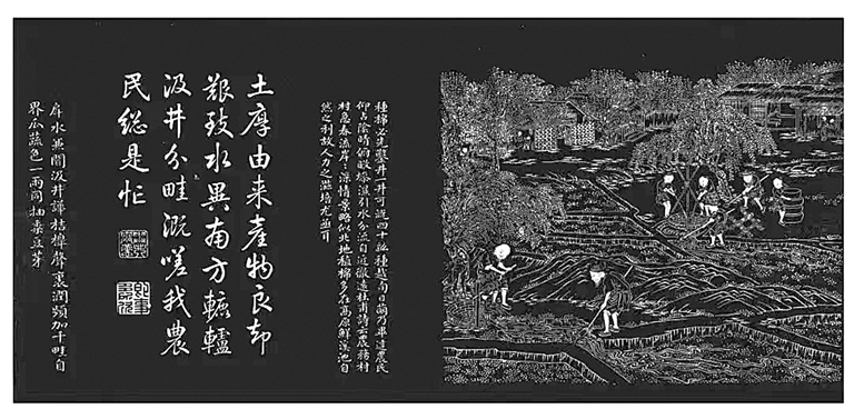 清朝灭亡以后,图文并茂的棉花图刻石流散到了保定半亩园街的两江会馆,1954年《御题棉花图》刻石由河北省博物馆收藏至今。准确的说,民间流传的、通常人们所见到的、并不是《御题棉花图》,而是《御题棉花图》刻石的拓本。