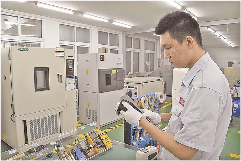 立中车轮车间,员工在检测产品。 刘海荣 供图