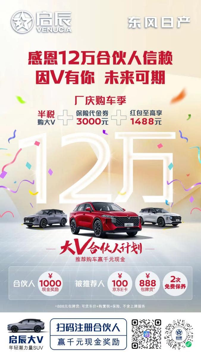 有口皆碑,宠粉有礼,启辰品牌靠谱的品质,以及贴心的服务,让越来越多车主加入到启辰车主大家庭中,实现“人传人”的口碑效应。2022年,东风日产启辰大V合伙人计划上线,目前已有12万新老朋友选择加入,成为大V合伙人,向身边亲朋好友推荐启辰品牌。每一位关注启辰大V的朋友和车主在注册成为大V合伙人后,即可获得1000元的现金奖励,只要成功推荐试驾或购车,双方均可获得相应奖励,让启辰车主大家庭愈发壮大。