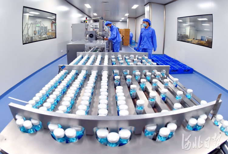 在石药集团欧意药业产品生产线上,员工正在作业。