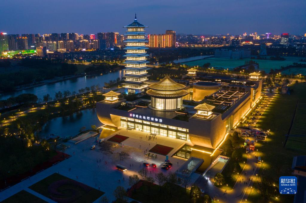 这是在江苏省扬州市拍摄的中国大运河博物馆夜景(2021年6月15日摄,无人机照片)。新华社记者 李博 摄