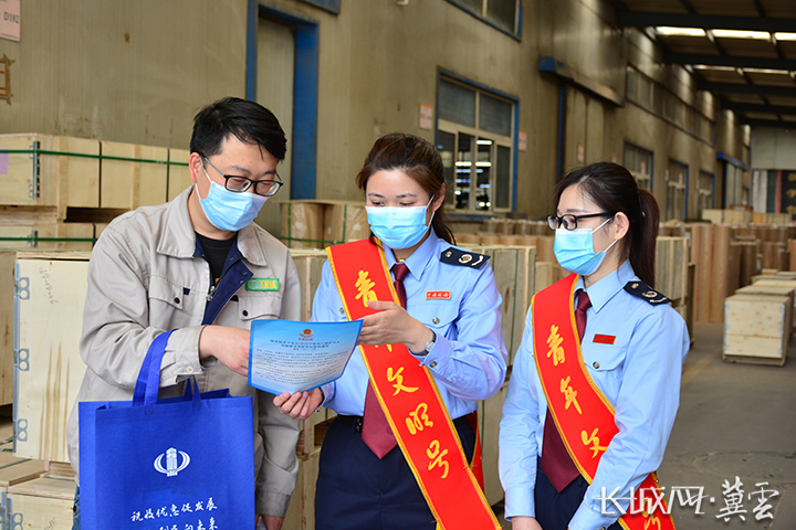 工作人员进企业进行相关税收政策宣传。衡水市税务局供图
