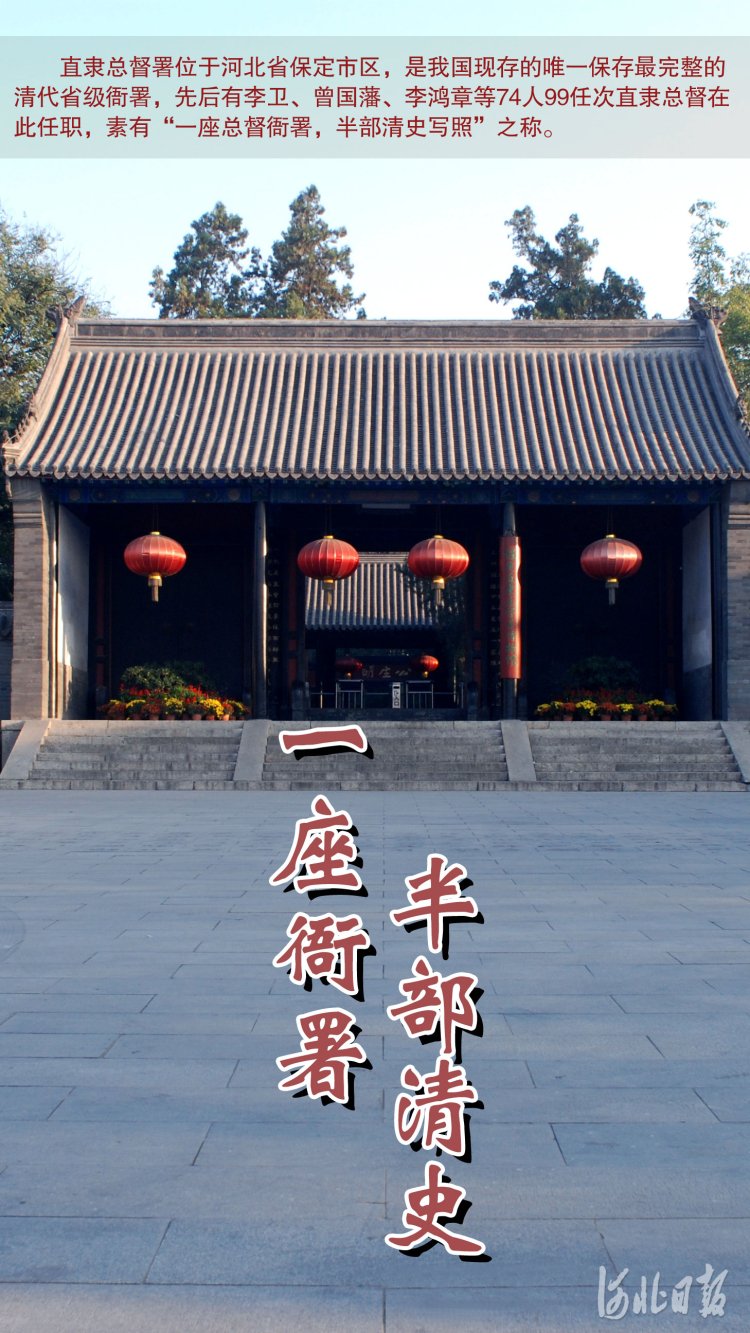 在河北保定,有一处游客们几乎必去的景点——直隶总督署。它是清代直隶总督的办公处所,也是我国现存的唯一一座最完整的清代省级衙署。原建筑始建于元,清雍正七年(公元1729年)经扩建后正式建立总督署,历经雍正、乾隆、嘉庆、道光、咸丰、同治、光绪、宣统八帝,共设有总督74人99任次,如创办莲池书院的李卫,一代廉吏唐执玉,因兴农治水被列为“乾隆五督臣”之一的方观承,以及清末重臣曾国藩、李鸿章、袁世凯等,可谓是清王朝历史的缩影,有“一座总督衙署,半部清史写照”之称。