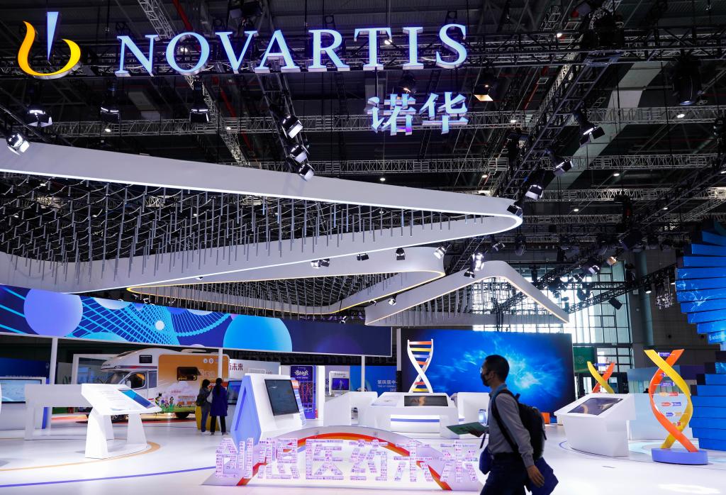 这是2021年11月9日拍摄的进博会医疗器械及医药保健展区的瑞士诺华展台。(新华社记者 张玉薇 摄)