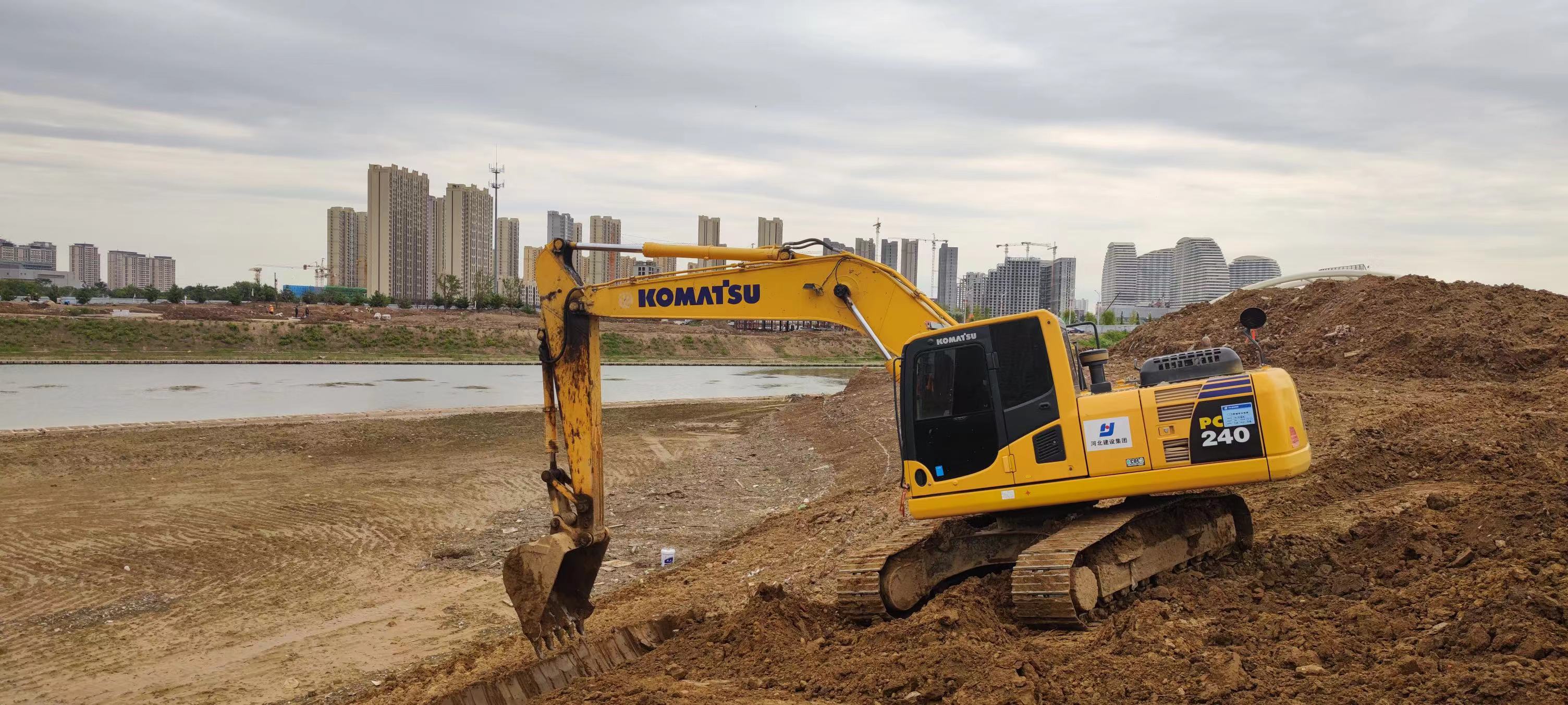 堤顶路长600多米。快到尽头处,正在建设的地下一层、地上两层钢结构建筑物主体已完工。7个吊车轻舒长臂、快速吊装作业,建筑物周边布满巨型石块和其他石材。这些石块就是景观石,从本地的西部山区运来的,李子康称:“这些石头是暖色石,也可叫做‘保定石’,咱们本地公园用的是本地石材。”