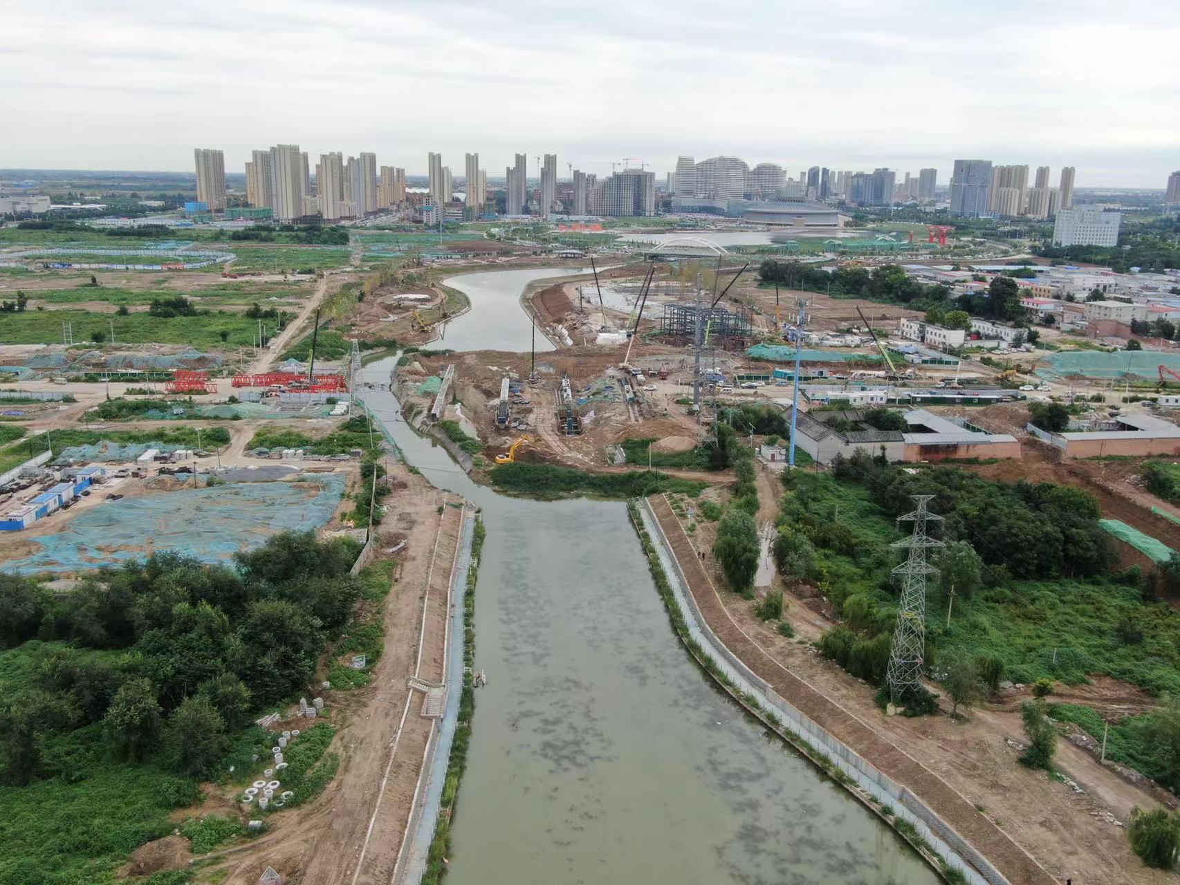 工地上,一派热火朝天景象。前行,堤路南侧土丘的坡面起伏,栽植着白皮松、法桐,更多的是梨树,赋予戏曲公园“梨园”之意。北侧河道弯弯,水面宽几十米,李子康是公园施工方——河北建设集团生态环境有限公司工作人员,他指着河道说:“河水最宽的地方有110多米,市区还没有这么宽的河呢。”