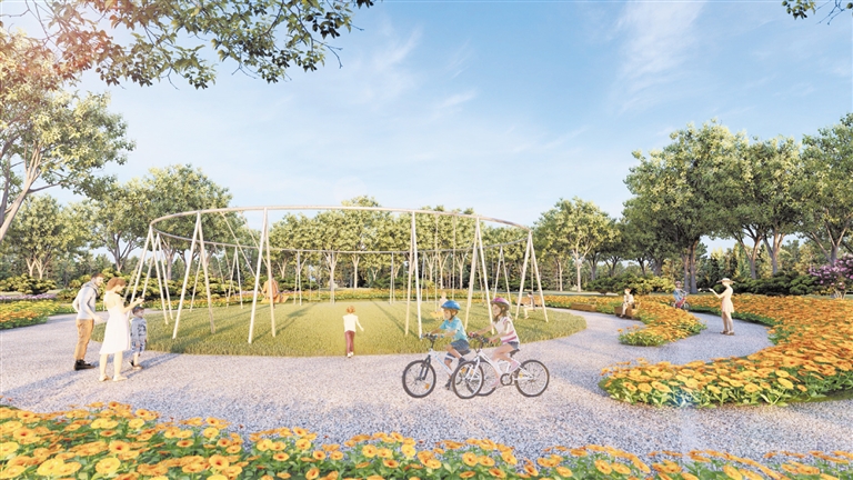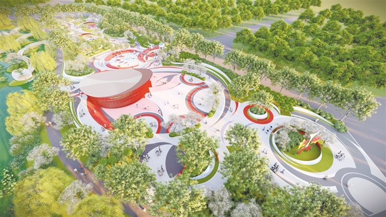 项目地块位于黄花沟北岸至北二环之间,西至永华北大街,东至京广线,总占地面积约577.8亩,其中水域景观面积约80亩。分为综合运动球场区、花海艺术休闲区、极限碗池运动区,主题儿童活动区、智慧运动体验区、滨湖休闲体验区、林下休闲区和入口综合服务区8个功能分区,满足全年龄段市民日常休闲运动需求。