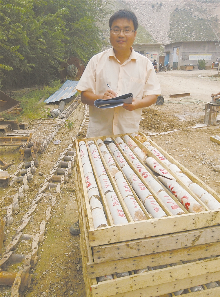 他记得2009年1月1日的清晨,矿区气温骤降。“我到一个钻孔后看到,刚钻出的岩心在清洗过后,在冬日的阳光下一些斑点闪闪发光。”他说,“见矿了,心里暗喜呀!”