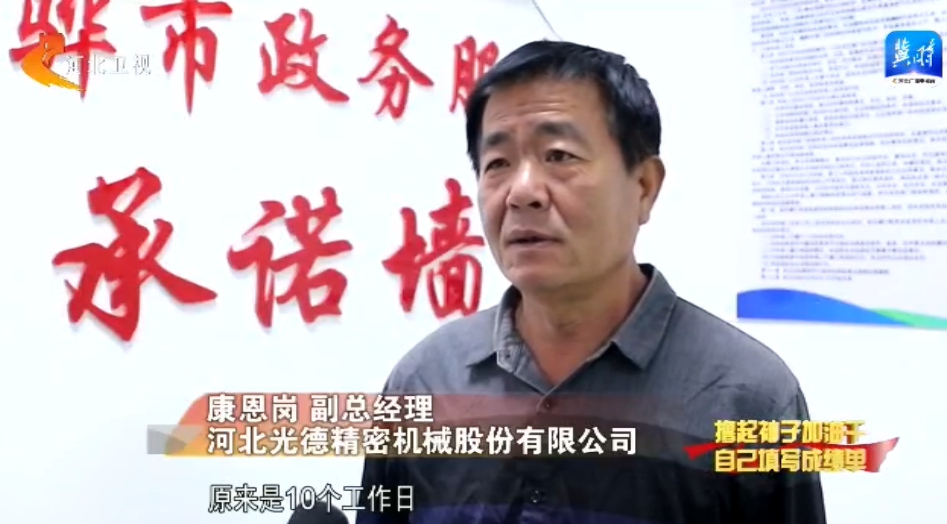 在沧州黄骅市行政审批局,河北光德有限公司的负责人在信用承诺室里对着镜头作出承诺。仅10分钟的时间,行政审批部门就完成了对企业10名特种设备作业人员资格的认定。