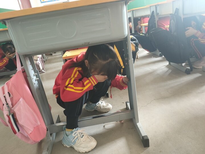 满城区满城镇守陵村小学地震应急演练现场 姚红泽摄