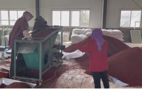 在位于青龙三星口乡的工厂,记者看到,刚收来的苍术正在卸货,工厂里面梁桂芹正和其他工人一起为五味子去除杂质。66岁的梁桂芹是三星口乡西转城号村村民,这个村距离工厂很近,她已经在这里打工两年有余,按天计工,每月稳定收入1000多元,这让她非常满足。