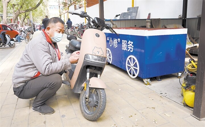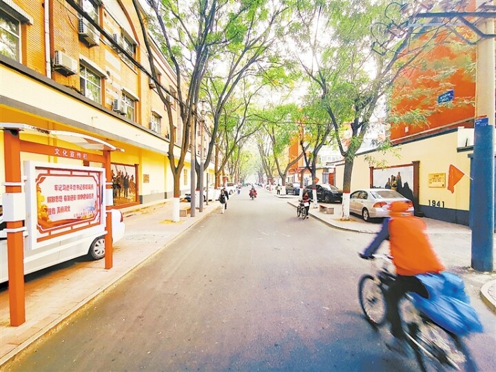 沿着街道向北,边走边瞧——路面平坦整洁;小区围墙、栏杆粉刷一新;修剪过的行道树“精神”极了;蓝色棚顶小推车停靠在路边,以修车、修鞋、配钥匙等“小修”服务为主的“城市港湾”便民专柜醒目又规整。不知不觉,胜利北巷出现在眼前。
