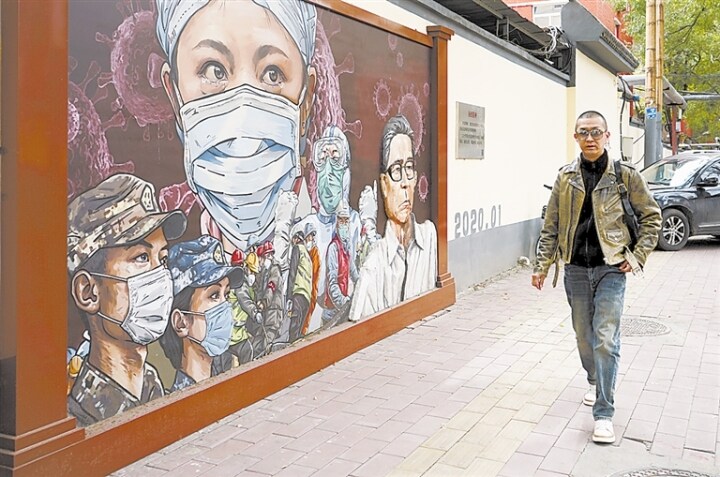 相比“烟火气”浓厚的胜利南巷,胜利北巷则更像是一条“红色文化旅游街”。十几幅长约5米、高约3米的浮雕立体画镶嵌在道路两侧淡黄色的墙面上。墙画以中国共产党从无到有、发展壮大为主线,选取其中重要时间节点和事件,以红船精神为起点徐徐展开。井冈山精神、长征精神、抗战精神、西柏坡精神、雷锋精神、焦裕禄精神、抗疫精神……一路向前,红色故事、中国精神传承不息。