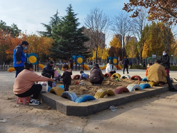 初冬暖阳下,孩子们在家长的陪伴下一起玩沙。霍若雯 摄
