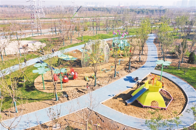五角枫、栾树、国槐、白蜡、北美红枫、红叶碧桃、樱花等30余种花树乔木,让园内四季都有“景”可观。