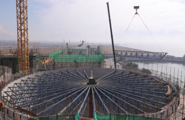 近日,位于河北省秦皇岛市海港区的中央储备粮秦皇岛直属库有限公司海港粮食储备基地项目二期全面封顶,700余名工人正在进行各工种的施工,现场紧张而有序。