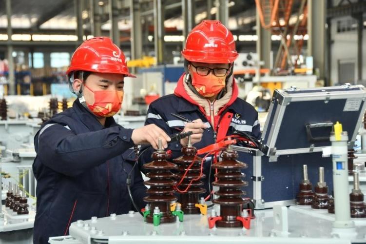 在位于永年工业园区的河北高晶电器设备有限公司,工人正在车间检测变压器。胡高雷 摄