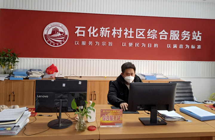 石化新村社区干部张宇鹏正在处理社区工作。 田伟供图