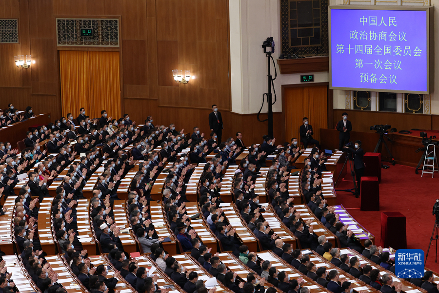 3月3日,中国人民政治协商会议第十四届全国委员会第一次会议预备会议在北京人民大会堂举行。新华社记者 张铖 摄