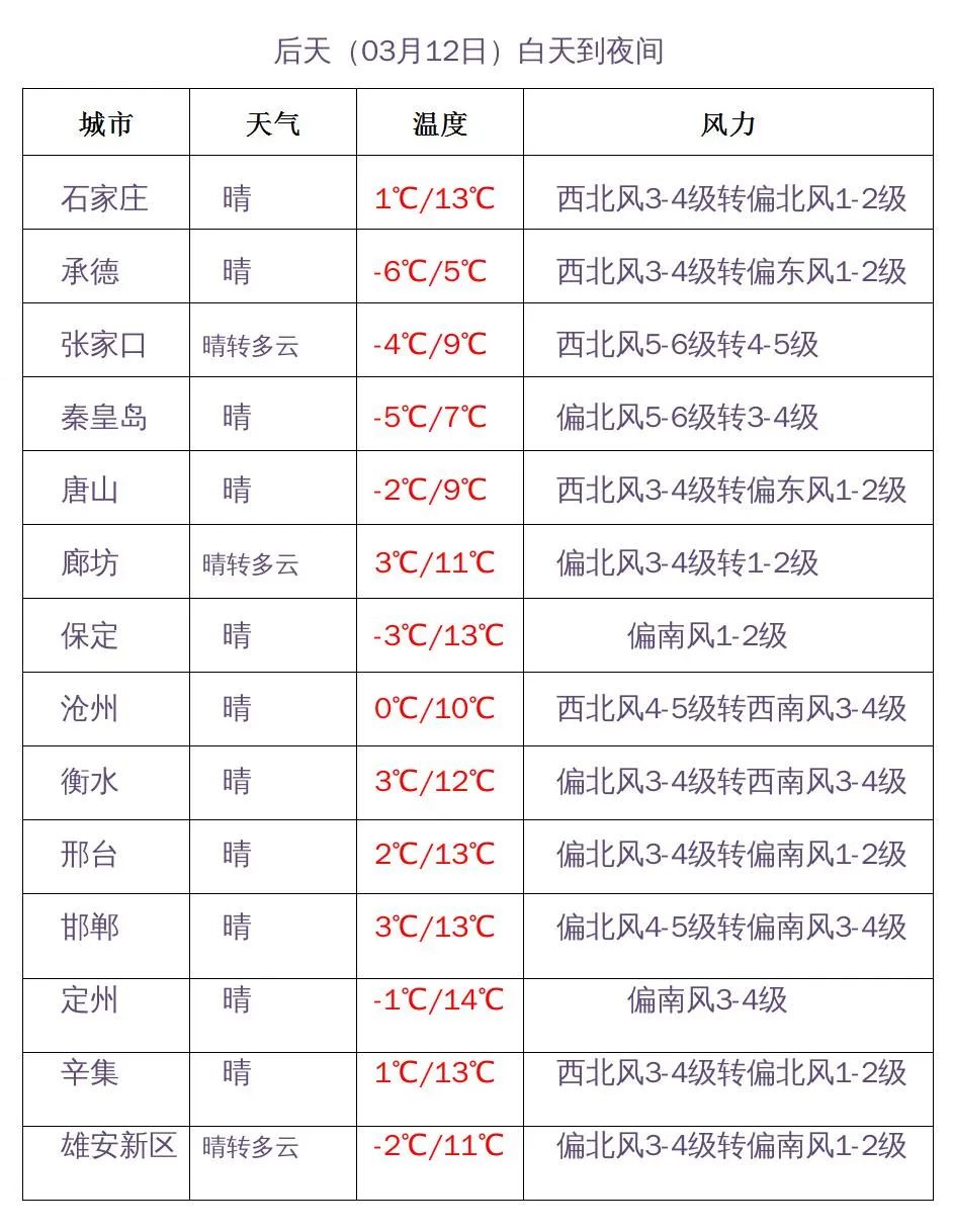 受从蒙古东移南下的冷空气影响,预计11到12日早晨,张家口、承德、保定西部、石家庄西部、沧州东部、邢台、邯郸最低气温下降8~12℃,局地下降12~16℃,其他地区下降4~8℃。12日早晨,张家口、承德、保定西部最低气温降至-11~-4℃,其中坝上地区降至-16~-11℃;石家庄、沧州及以南地区降至0~4℃,其他地区降至-3~2℃。请防范!