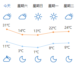 而最高气温也将进行“5折满减”大促,像石家庄,今天的最高气温31℃,但明天就将暴跌至14℃。