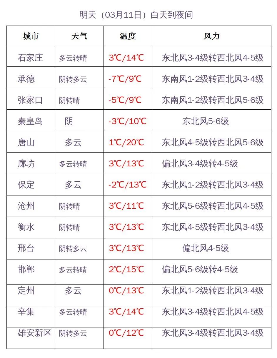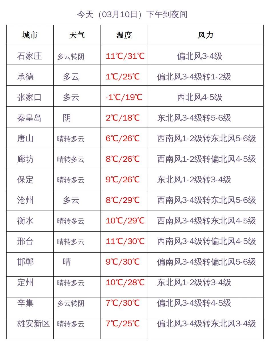 河北省气象台2023年03月10日11时发布天气预报: