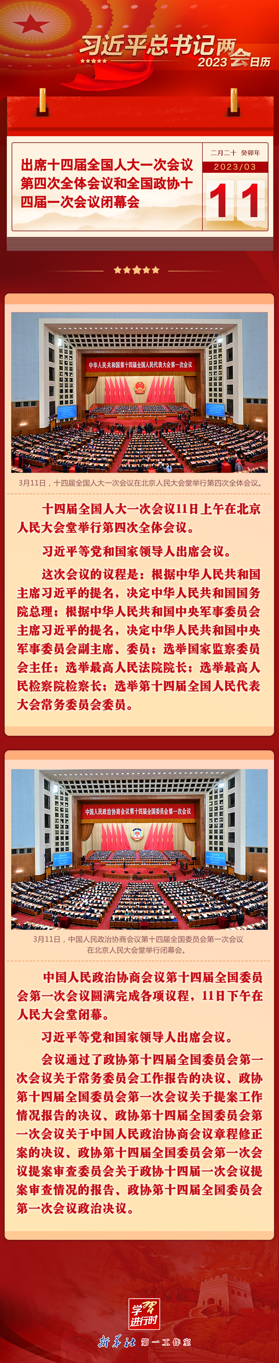 习近平总书记2023两会日历:3月11日出席人代会第四次全体会 政协闭幕会