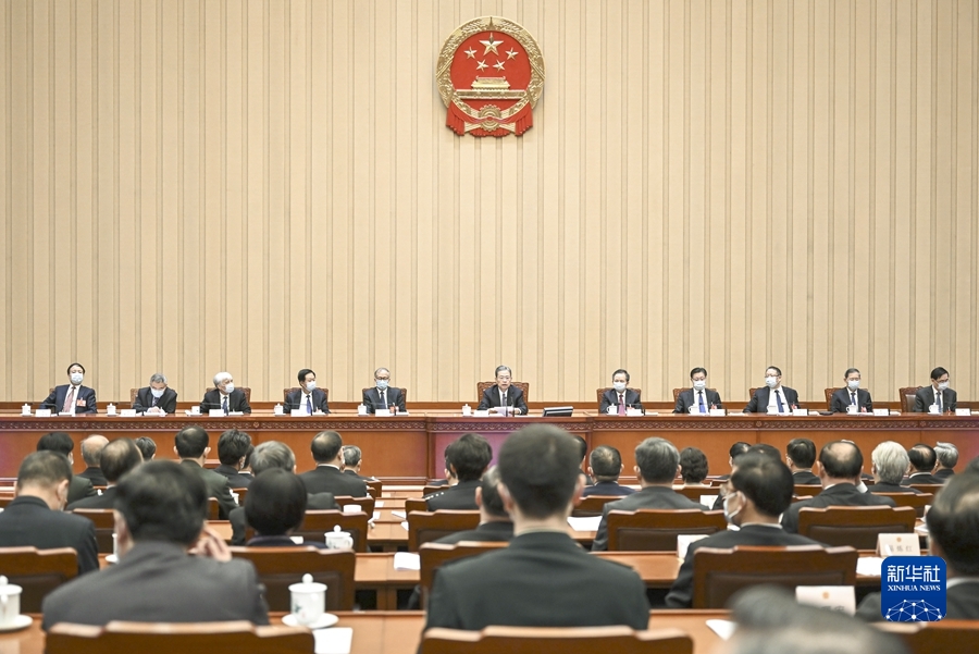 3月11日上午,十四届全国人大一次会议主席团在北京人民大会堂举行第七次会议。主席团常务主席赵乐际主持会议。新华社记者 燕雁 摄