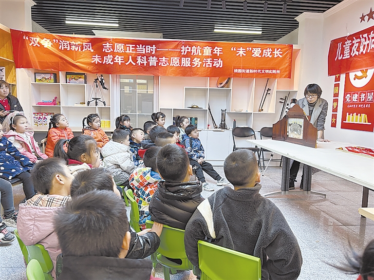保定日报讯(通讯员张宇晴 冯歆桐)桃园街道新时代文明实践所日前组织开展“双争”润新风 志愿正当时——护航童年“未”爱成长未成年人科普志愿服务活动,为辖区未成年人送上一堂别开生面的科普盛宴,激发未成年人的探索欲和求知欲。