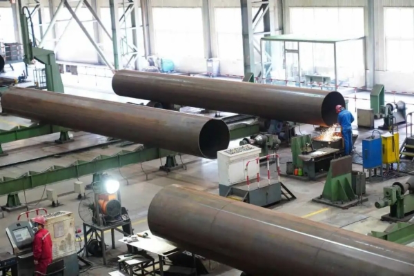 中油宝世顺钢管有限公司的工人在为国家西气东输工程加紧生产。