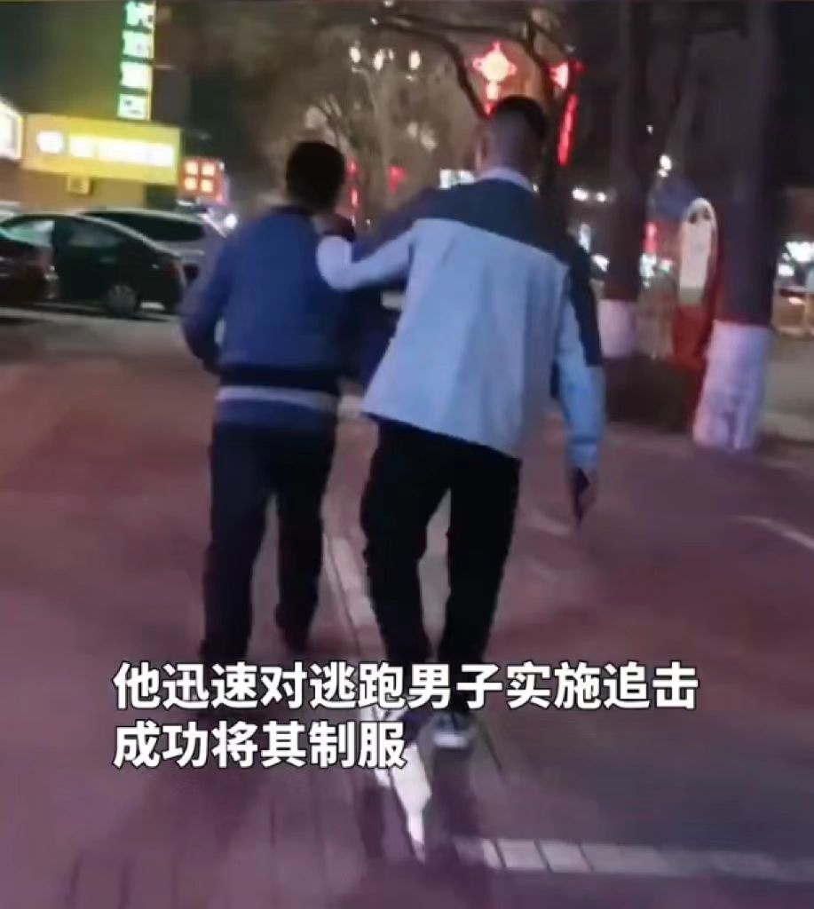 向周边人群打听,杨艳奇才得知,最先跑出去的男子趁乱偷窃女子手机时被发现。杨艳奇赶紧跟着跑了出去,就看男子出了超市门口朝东跑,女孩儿在后边追。杨艳奇马上报了警,“当时有一个穿运动服的小伙子听说后,也朝小偷逃跑的方向追了上去,女孩子都追不上了,他还接着追,大概600多米吧,追到定兴县文化广场时,终于把小偷逮住了,当时很多人都朝小伙子竖大拇指。”