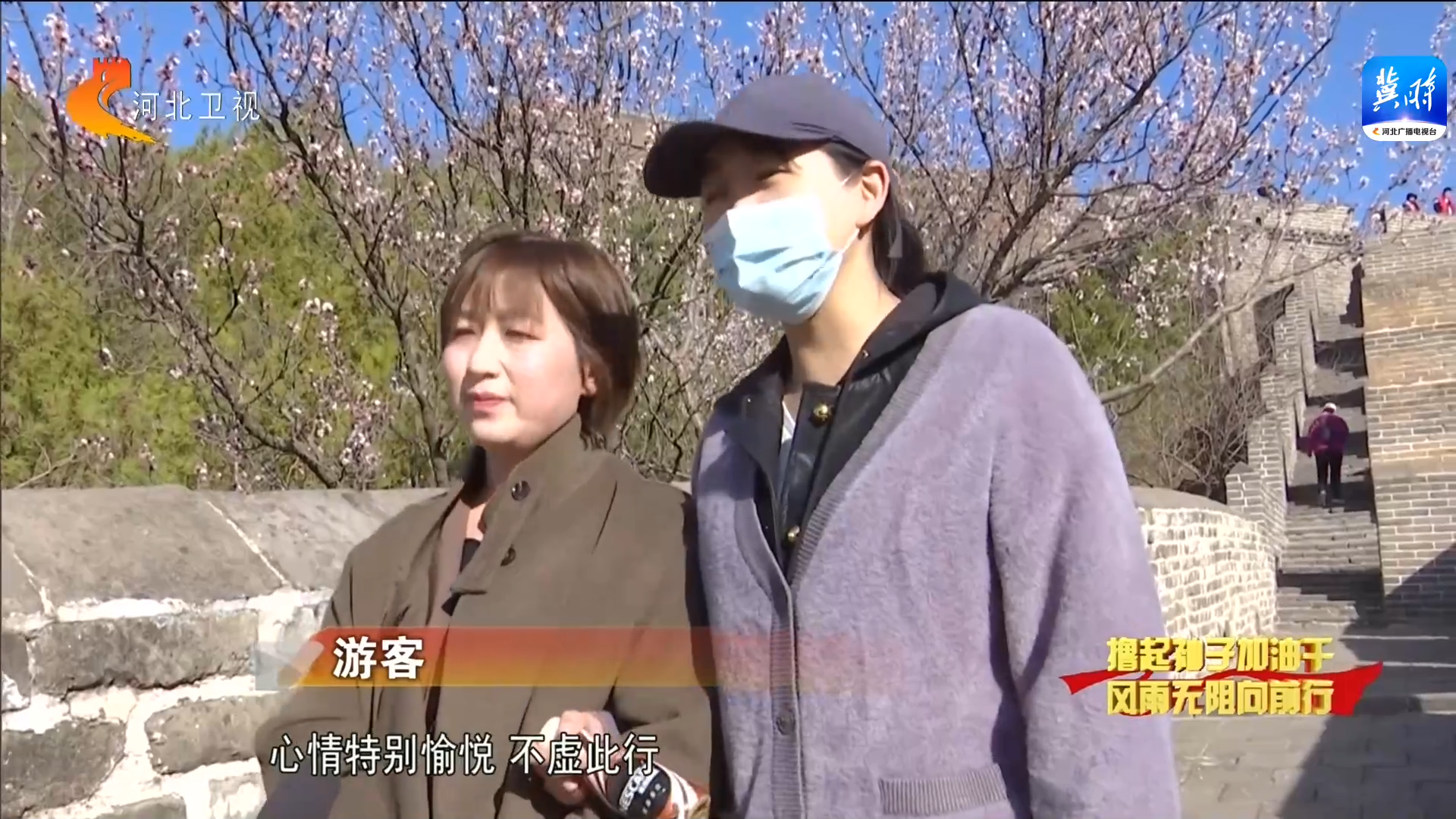 看着这么古朴雄厚的这个长城,然后闻着这个花香,就觉得特别心旷神怡,心情特别愉悦,不虚此行。