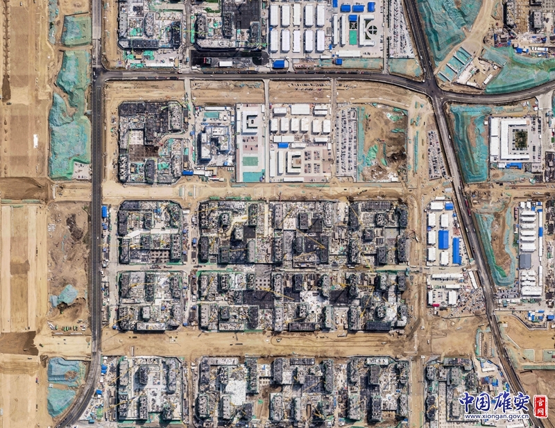 雄东片区B单元安置房三标段施工现场(航拍图)。中国雄安官网高盟 摄