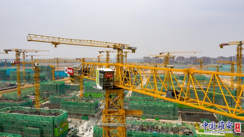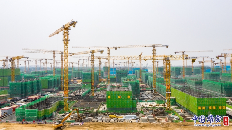 记者在雄东片区B单元安置房三标段项目施工现场看到,32座高耸的塔吊与春日的暖阳交相辉映,280余台套机械轰鸣作响,近4000名新区建设者在各自岗位上挥洒着汗水,一派热火朝天的建设景象。