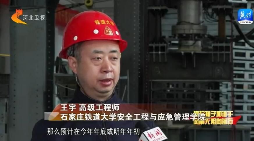 冀时客户端报道记者来到位于石家庄铁道大学的河北省交通应急保障工程技术研究中心时,高级工程师王宇正带领学生在对最新研发的流动式桥梁换架机进行疲劳试验。