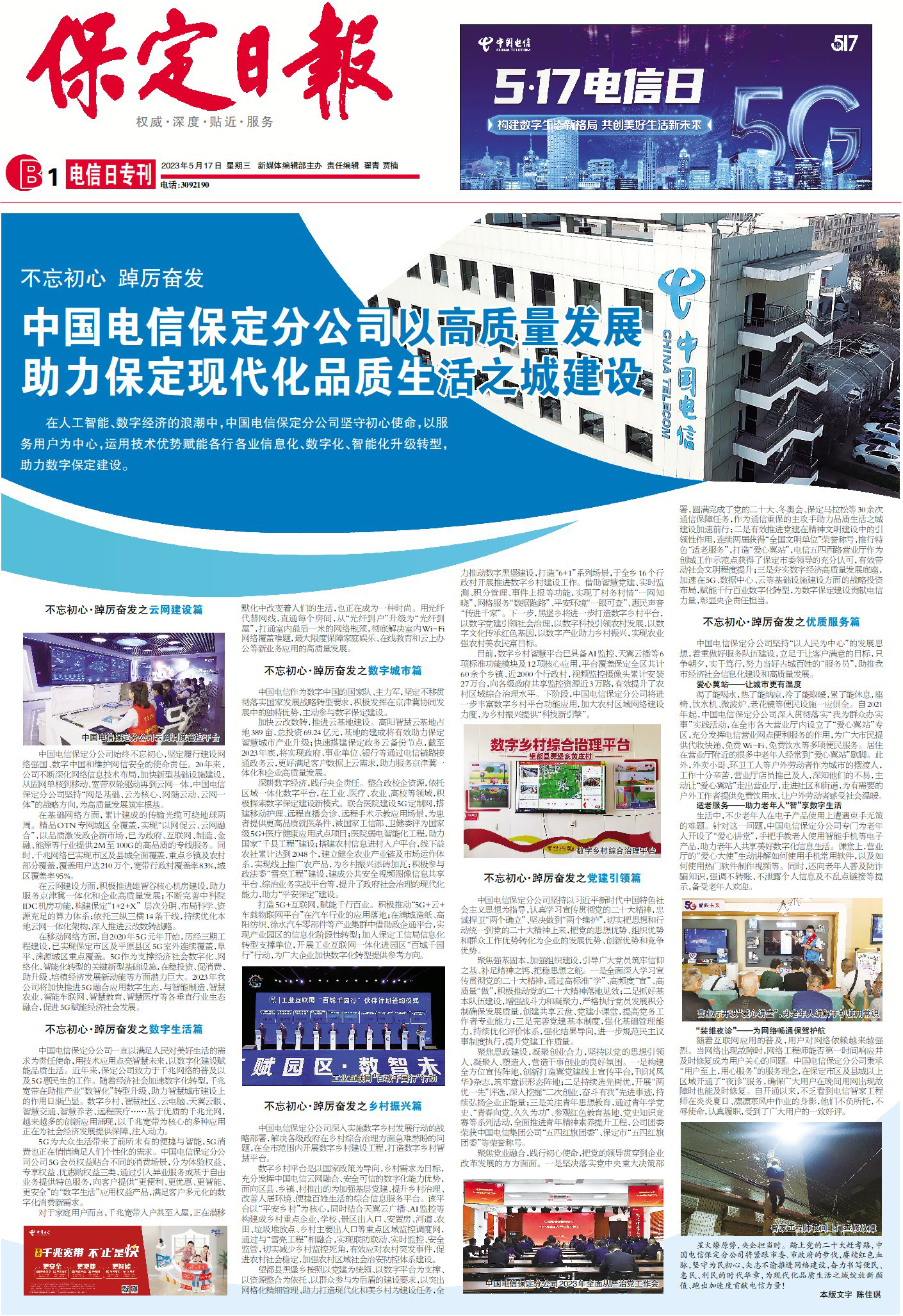 在人工智能、数字经济的浪潮中,中国电信保定分公司公司坚守初心使命,以服务用户为中心,运用技术优势赋能各行各业信息化、数字化、智能化升级转型,助力数字保定建设。