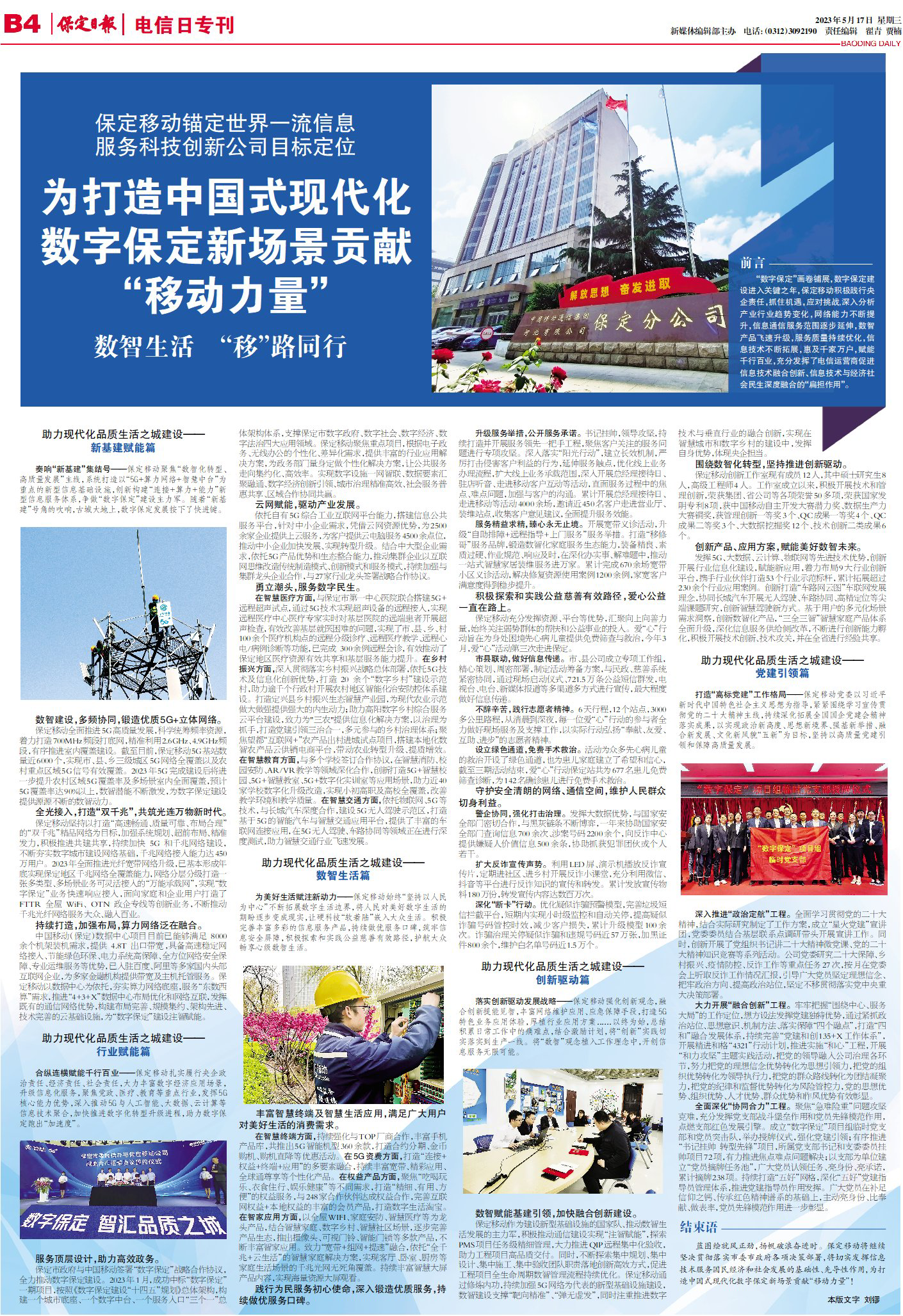 蓝图绘就风正劲,扬帆破浪奋进时。保定移动将继续坚决贯彻落实市委市政府各项决策部署,将切实发挥信息技术服务国民经济和社会发展的基础性、先导性作用,为打造中国式现代化数字保定新场景贡献“移动力量”!