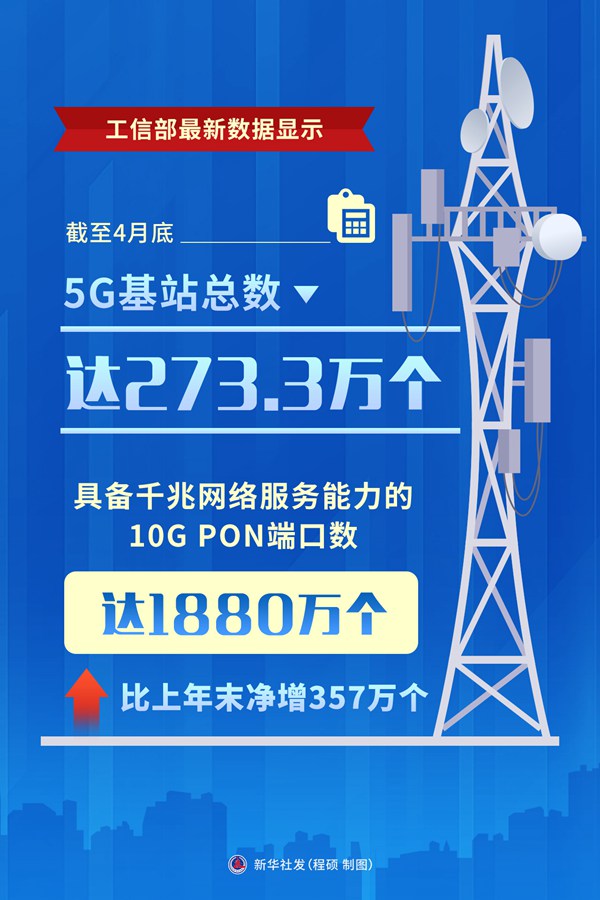 新华社北京5月26日电 题:5G基站达到273.3万个,数字基础不断夯实