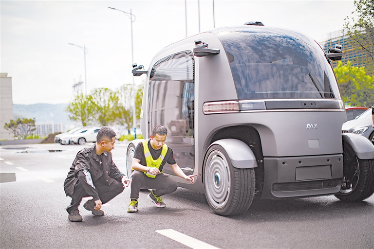 6月14日,在贵阳市高新区生态科技产业园一家无人驾驶汽车企业内,就读于新加坡国立大学机器人专业的实习生李昂民荃(左)和同事张军文一起调试车辆。 近年来,贵州省贵阳市高新区生态科技产业园内的无人驾驶汽车制造企业成为不少海外留学归来学生和国内高校毕业生的就业选择。先进的智能技术研发平台、较为宽松的工作环境、当地政策倾斜扶持等吸引高科技人才落地。 新华社记者 刘续 摄