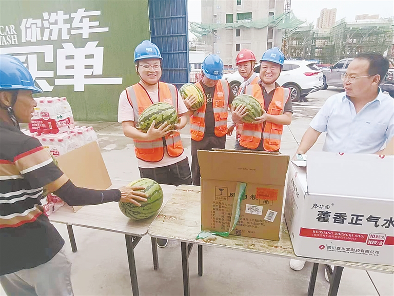 “工地给我们准备了200件矿泉水,5000斤西瓜,还为我们准备了冰柜,可以免费吃雪糕。”韩村安置区钢筋工人李志安抱着西瓜开心地说。