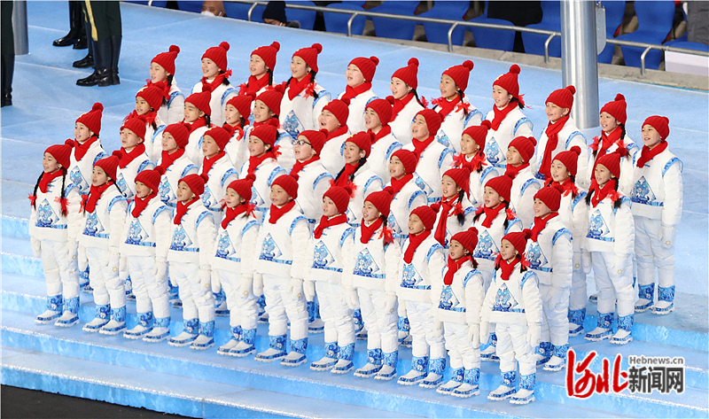 北京2022年冬奥会闭幕式上,来自阜平县山区的“马兰花儿童声合唱团”放声歌唱。(本报资料片) 河北日报记者 霍艳恩摄