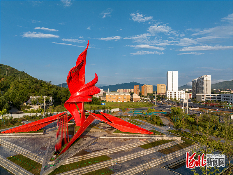 日前,阜平县地标性主题雕塑——《时代之光》在照旺台公园落成。7月13日,居民在雕塑前游玩、休憩。 李玉亮摄