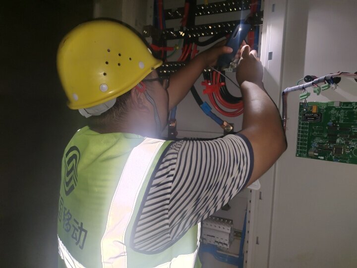 8月6日20时30分,现场抢修更换板卡,肖官营汇聚机房业务恢复(白建辉 摄)。