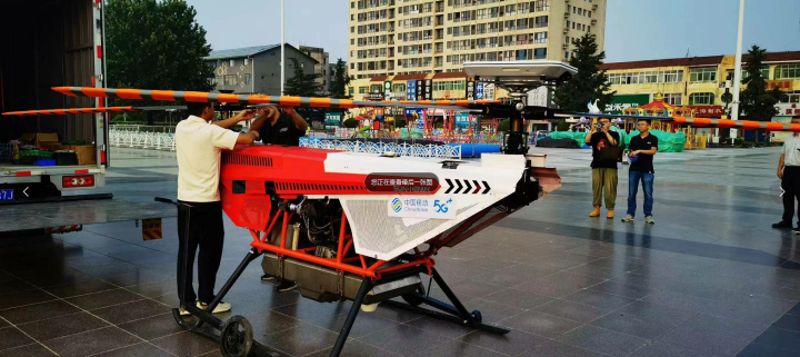 8月3日上午7点中国移动中型无人机应急通信系统正式起飞,执行涿州指定区域应急通信保障任务。(柴松摄)