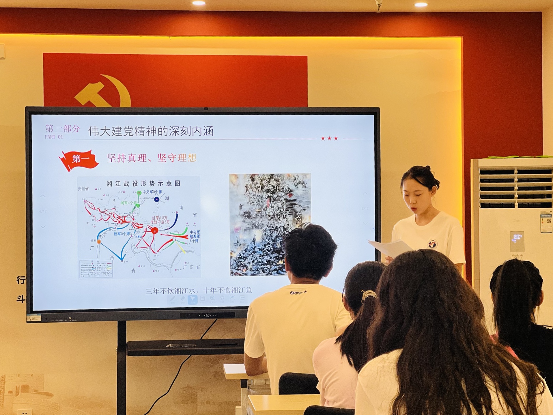宣讲由一个个故事贯穿起来:从了解一块石头到见证铁纪的诞生;从一根扁担到挑起精神的传承;从一根灯芯到点亮中国的未来。深入浅出的讲解,让青年团员们以理论学习形式了解伟大建党精神的深刻内涵,弘扬伟大建党精神、井冈山精神,感悟革命前辈的英勇事迹。